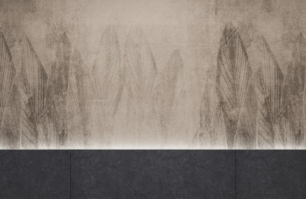 Textura bej neutru sugerează un aspect natural cu detalii abstracte oferind profunzime vizuală. O bandă luminoasă orizontală, elegant integrată, separă această zonă de secțiunea inferioară aducând stabilitate și plus de dinamism.